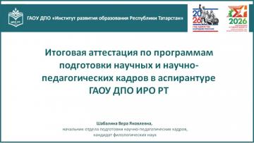 2 апреля 2026 года в Институте развития образования Республики Татарстан состоялось собрание аспирантов третьего курса, посвящённое вопросам итоговой аттестации по программам подготовки научных и научно-педагогических кадров в аспирантуре.